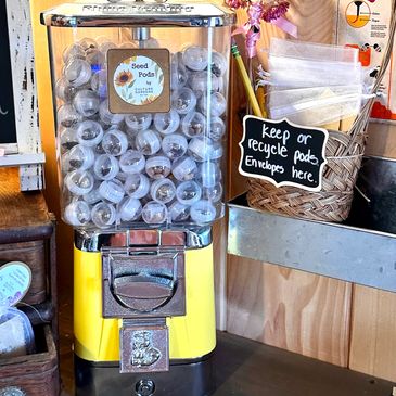 We will be selling our homemade goods and bouquet subscriptions along with plant starts to take home. Bring your quarters for our seed pod machines.